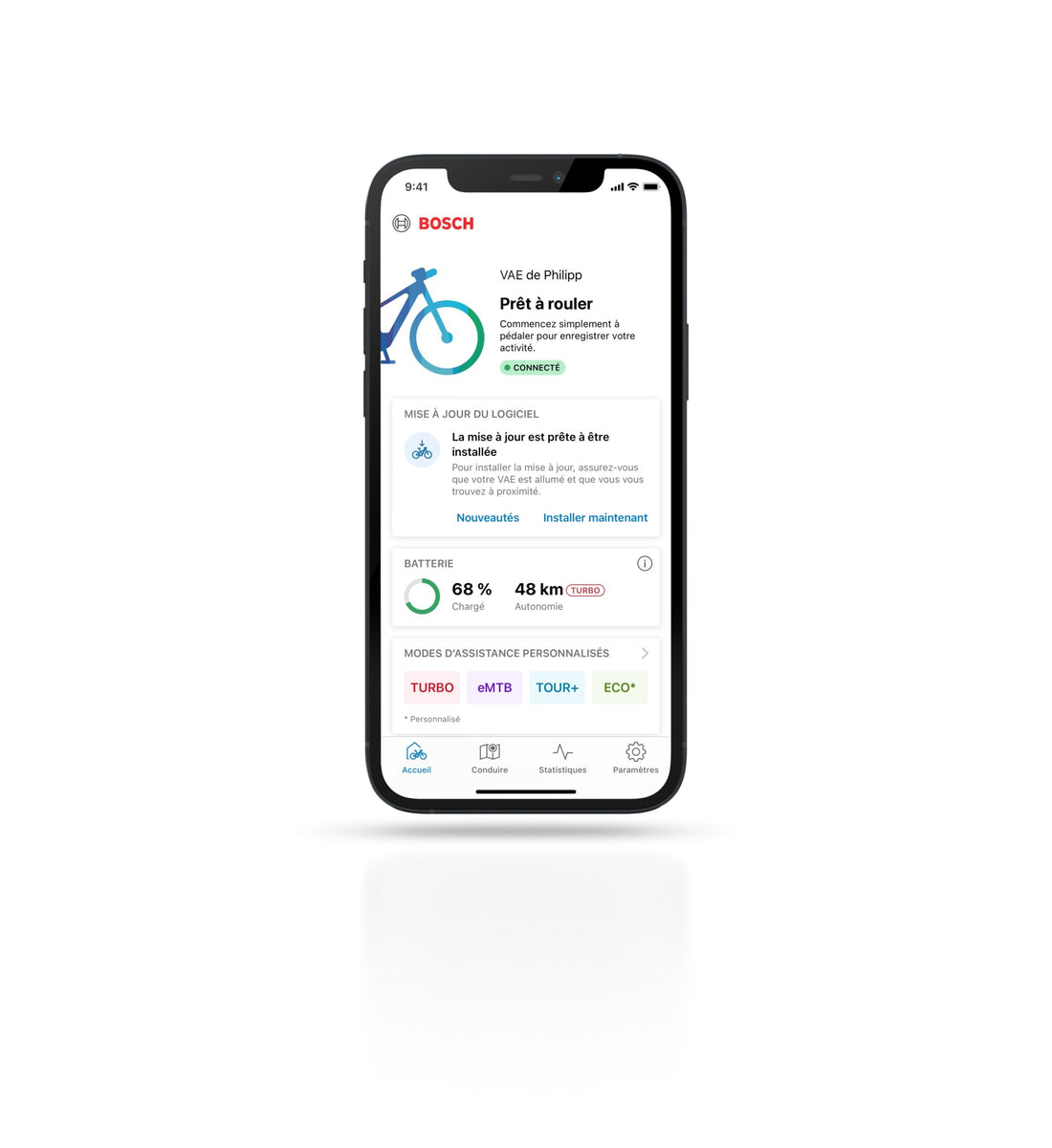 Assistance is what will make your life easier, especially on steep slopes or over long distances. It is activated by pedaling and can take you more or less far depending on the autonomy of your bike.